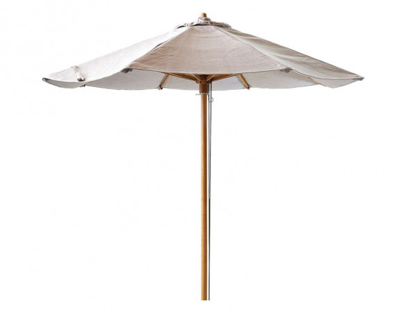 Stoffet på parasollen er det slidstærke Solution dyed 280gr/m2, der sikrer en vejrbestandig parasoldug, som samtidigt er resistent mod UV-stråler. En slidstærk og klassisk parasol med en lang levetid.