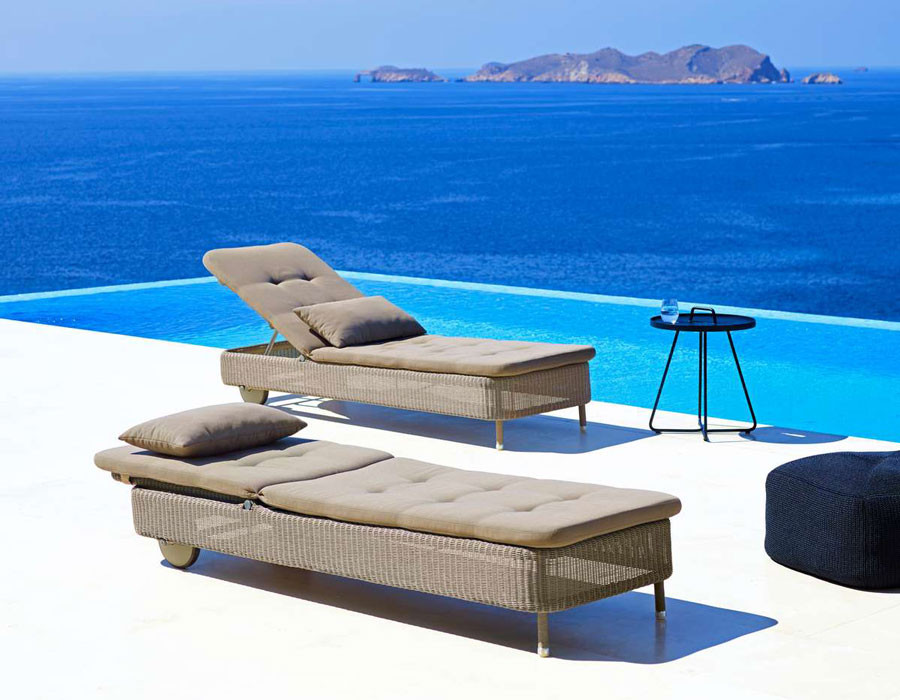 En klassisk solvogn håndflettet i Cane-line Weave®. Med justerbart ryglæn, der kan indstilles i mange positioner. Solvognen har blandt andet en helt vandret position, således at det er behageligt at ligge både på ryggen og på maven. Solvognen har hjul og kan nemt flyttes rundt på terrassen eller i haven.