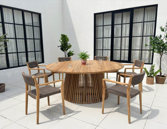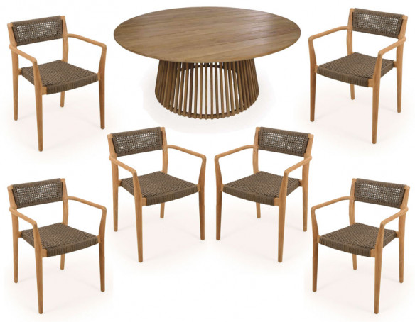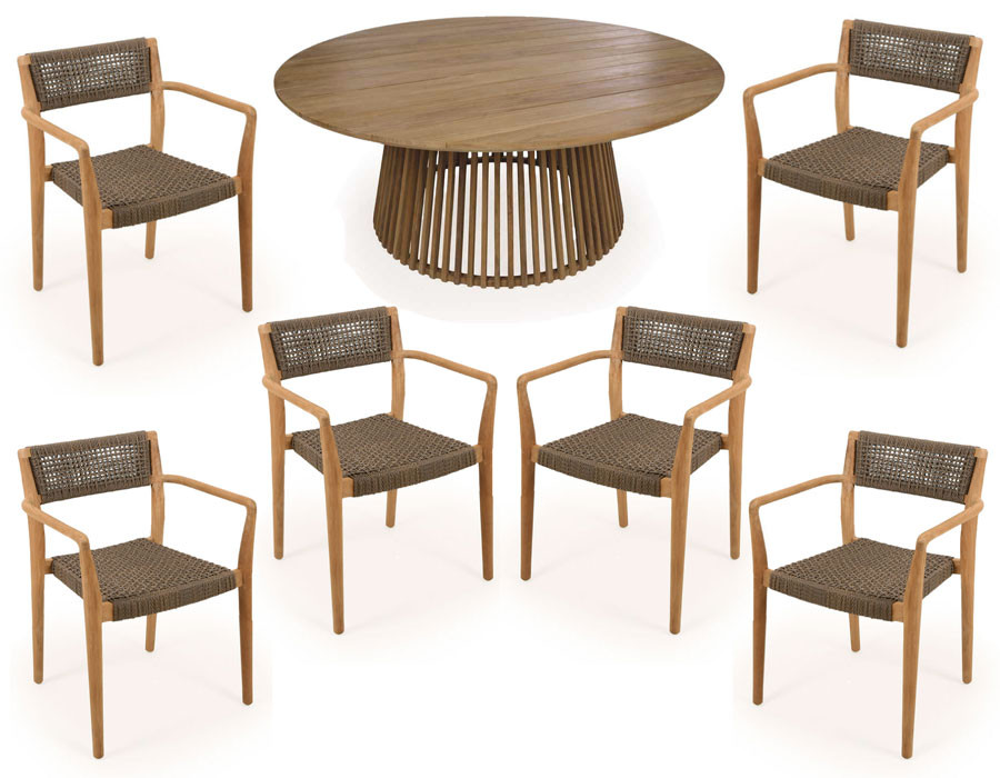 Luna Tonka Teak havemøbelsæt m/6 stole - Ø180 cm