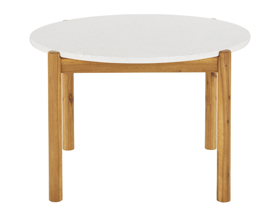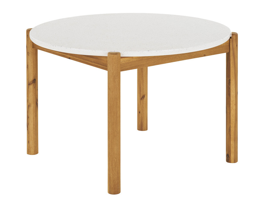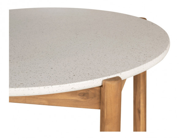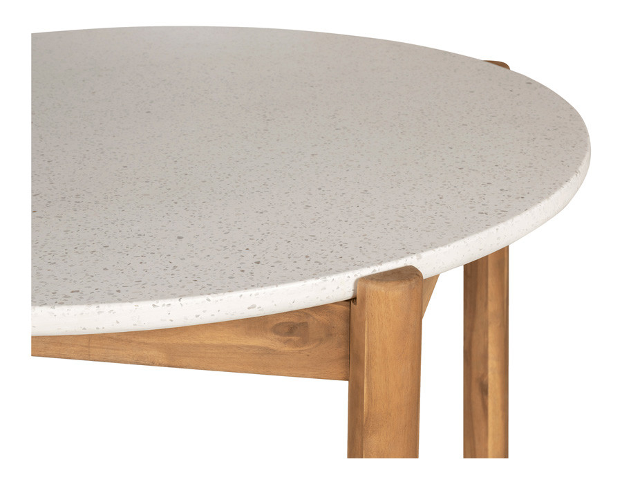 Havebord i akacietræ og terrazzo med et elegant og naturligt udtryk. Den organiske bordplade i terrazzo tilfører et eksklusivt look, mens stellet i akacietræ skaber varme og en smuk kontrast.