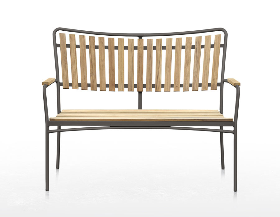 Denne stol har et elegant stel i pulverlakeret grå aluminium og er designet med et ergonomisk sæde og ryg i certificeret kvalitets teaktræ.