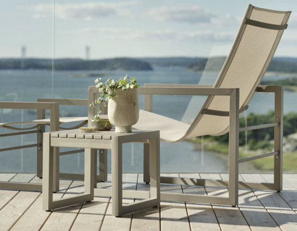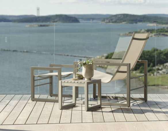 Det lette design gør det nemt at flytte rundt, og materialet tørrer hurtigt, hvis der kommer en regnbyge. Med sit nordiske formsprog og rene linjer passer det perfekt ind i enhver moderne udendørsindretning.