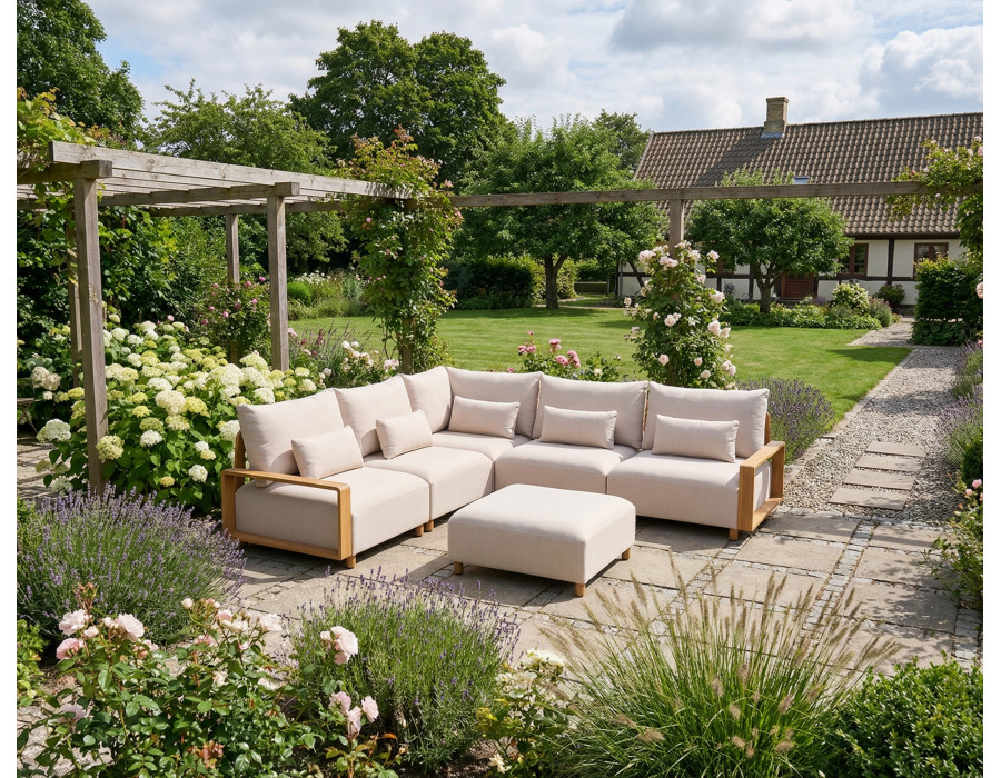 Jakarta loungesæt i 6 dele giver dig en lækker, fleksibel loungeplads, der passer lige godt til terrasse og have.