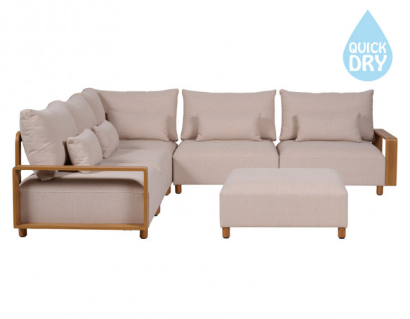 De rummelige moduler skaber et roligt, harmonisk udtryk, og den medfølgende puf gør sættet ekstra anvendeligt: Brug den som puf, chaiselong eller en ekstra siddeplads, når der skal være plads til alle.
