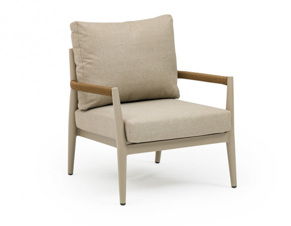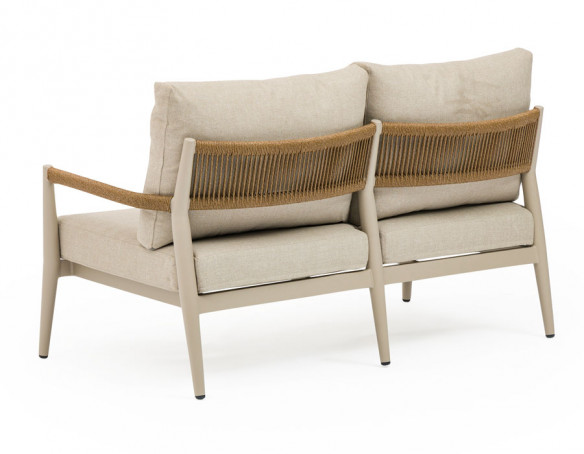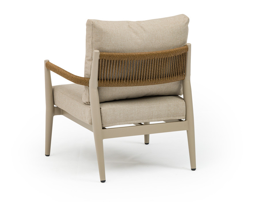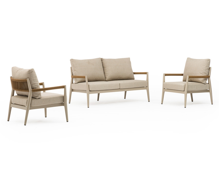 Svendborg loungesæt er et stilrent og komfortabelt valg til terrasse, altan eller have. Det latte-farvede stel i pulverlakeret aluminium kræver minimal vedligeholdelse, mens flet i polyrattan på sider og armlæn giver et varmt, indbydende udtryk.
