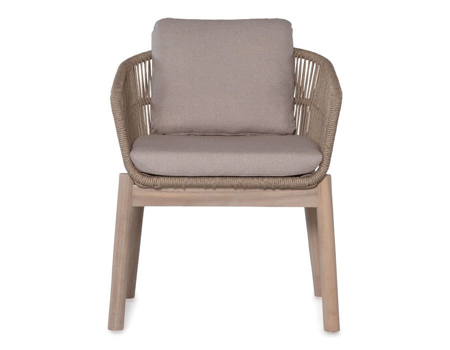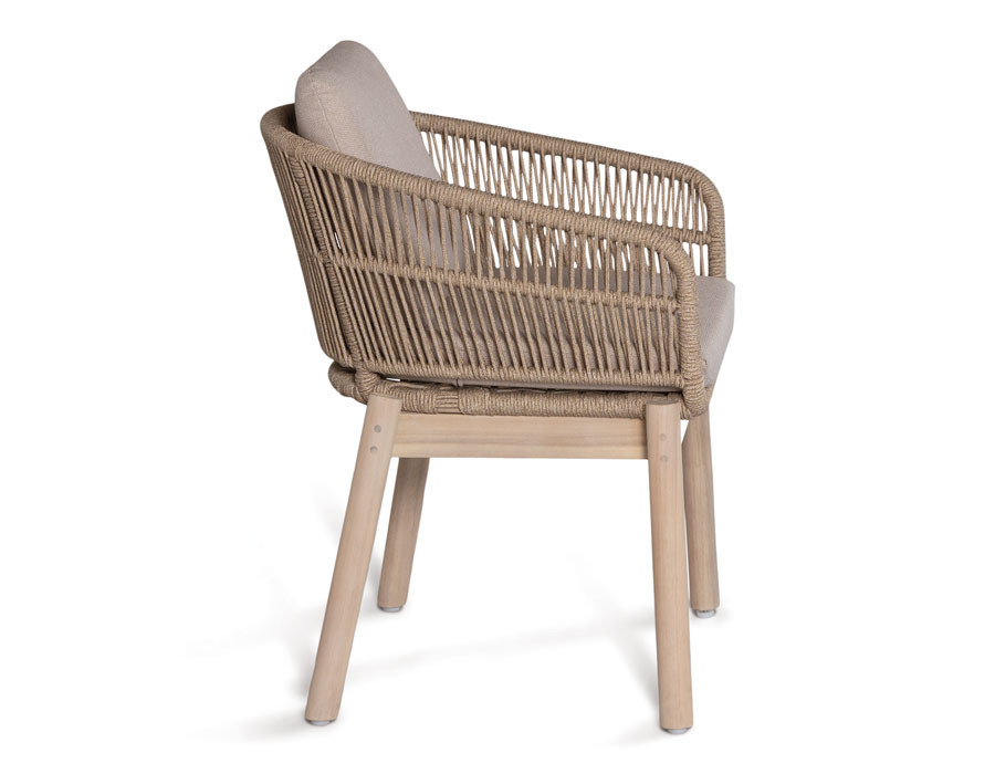 Helena Dining Lounge stol kombinerer et varmt, naturligt udtryk med komfort, du kan blive siddende i længe. Stellet er fremstillet i akacietræ, mens sæde og ryg er beklædt med reb i 100% polyester, der giver et let og elegant look med en hyggelig, håndflettet fornemmelse.