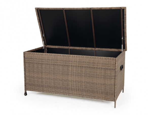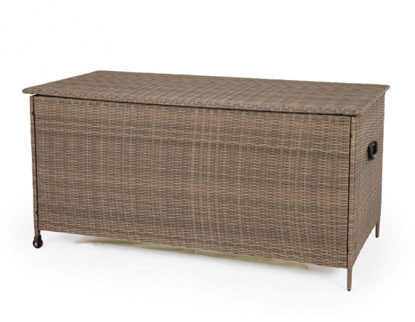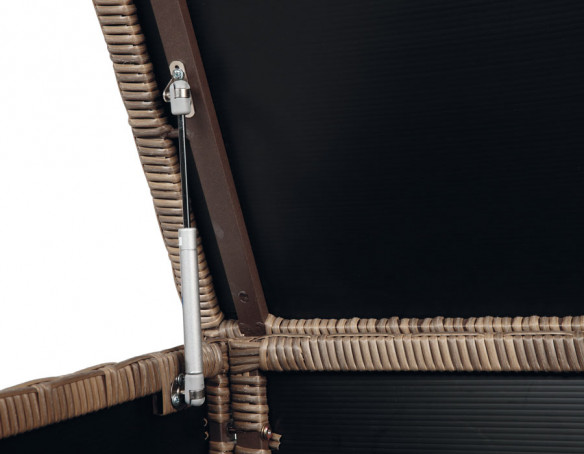 Skab ro og overblik på terrassen med en rummelig hyndeboks i kraftig dusty polyrattanflet og et solidt alu-stel. Her får du en praktisk løsning til opbevaring af hynder, plaider og andre småting, så du nemt kan pakke sammen efter en lang dag – og hurtigt gøre klar igen, når solen titter frem.