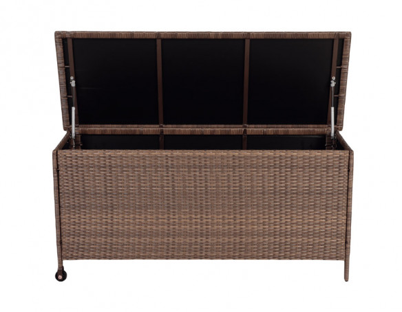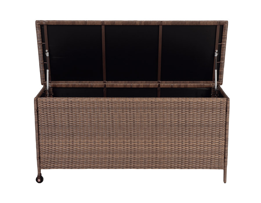 Hold nemt orden på terrassen med denne rummelige hyndeboks i kraftig Dusty polyrattan og et solidt alu-stel. Den er ideel til opbevaring af hynder, plaider og småting, så du hurtigt kan pakke sammen – og lige så hurtigt gøre klar til næste hyggestund uden at slæbe rundt.