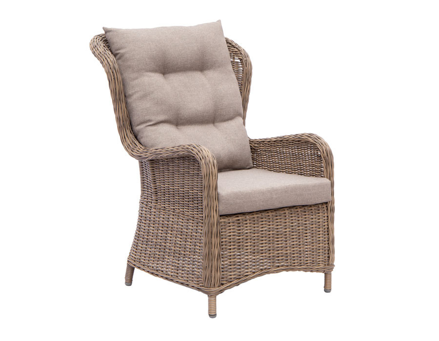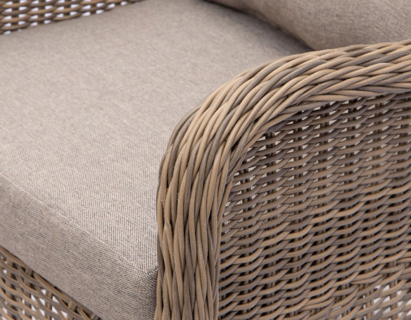 Fremstillet i kraftig dusty polyrattan flet og med kraftige sandfarvet hynder.