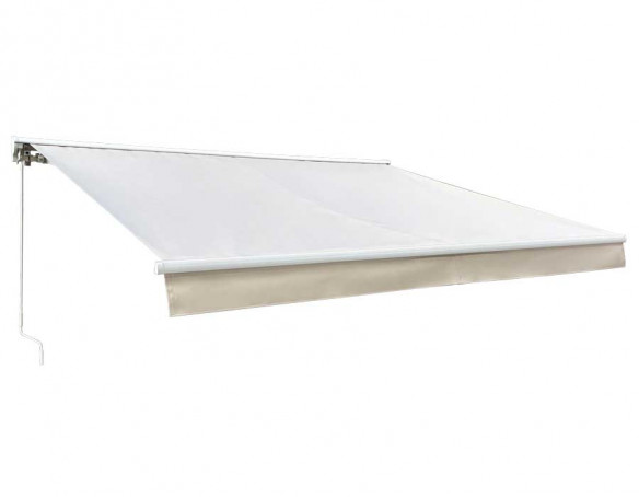 Denne semikassette-markise betjenes manuelt med et håndsving, så du nemt kan tilpasse skyggen i løbet af dagen. Den hvide kassette giver et rent og elegant udtryk, og semikassetten hjælper med at beskytte dugen, når markisen er rullet ind.