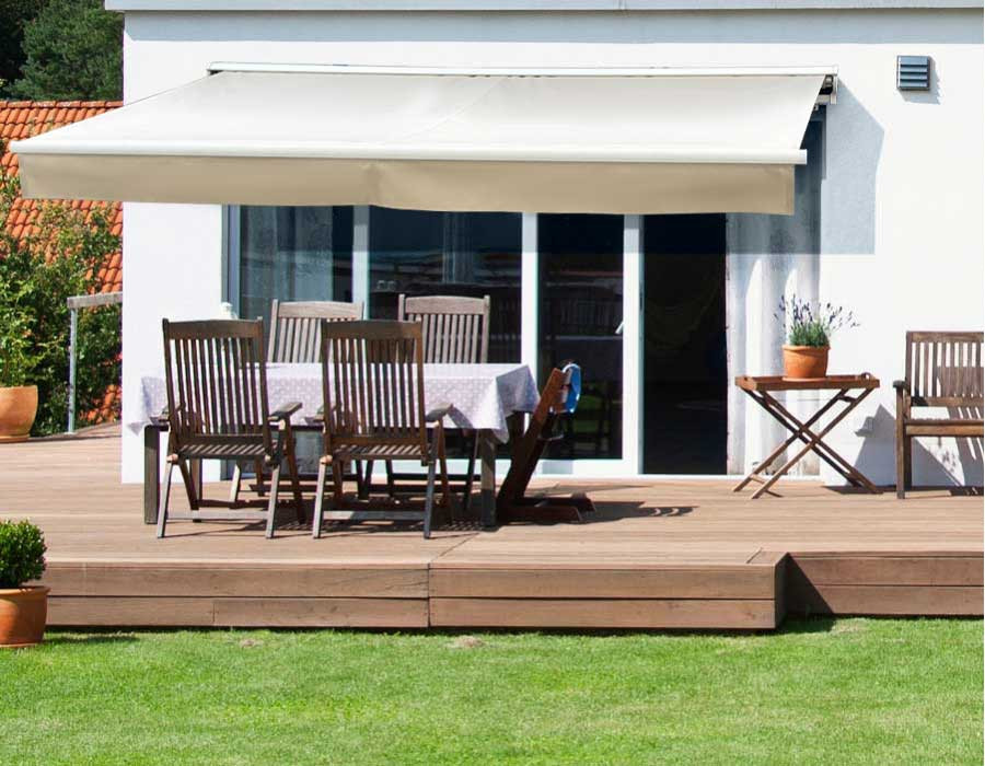 Skab en dejlig skyggeplads med Ask Manuel Markise i hvid/beige.