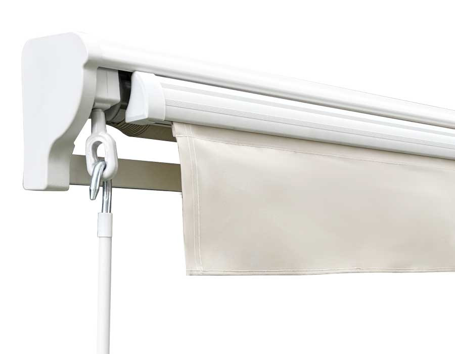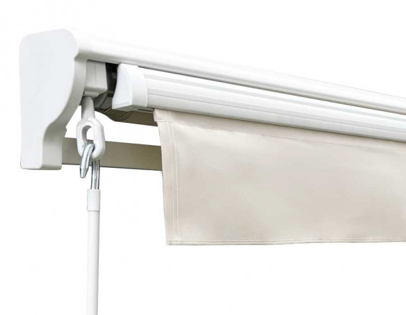 Den matte, hvide kassette giver et rent og moderne udtryk, og semikassetten beskytter dugen, når markisen rulles ind. Konstruktionen er udført i aluminium og forstærket med stål torsionsstang for stabilitet....