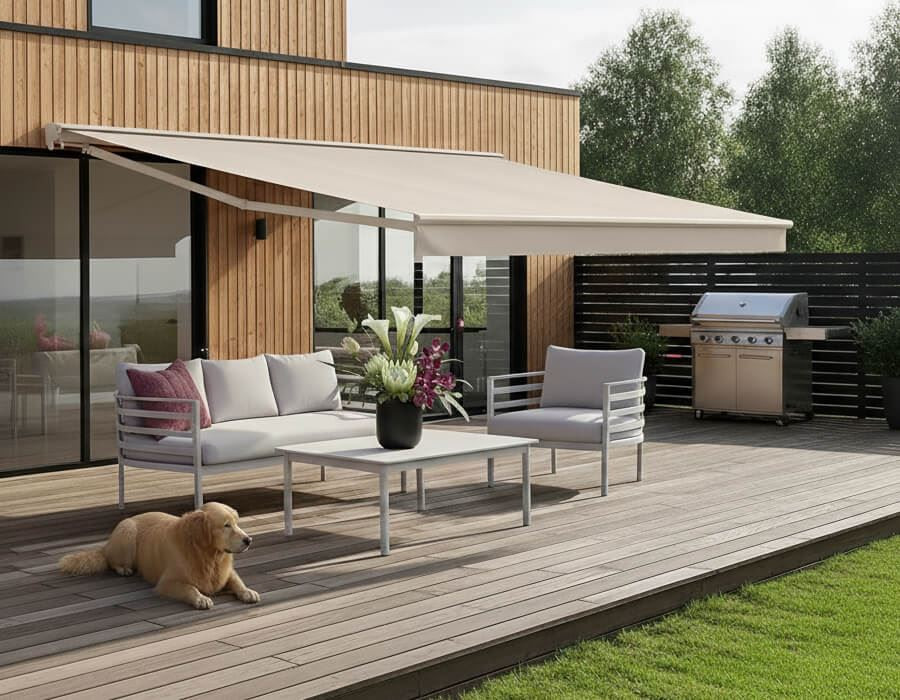 Forvandl terrassen til en rolig, indbydende hyggekrog med Pil Markise i grå.