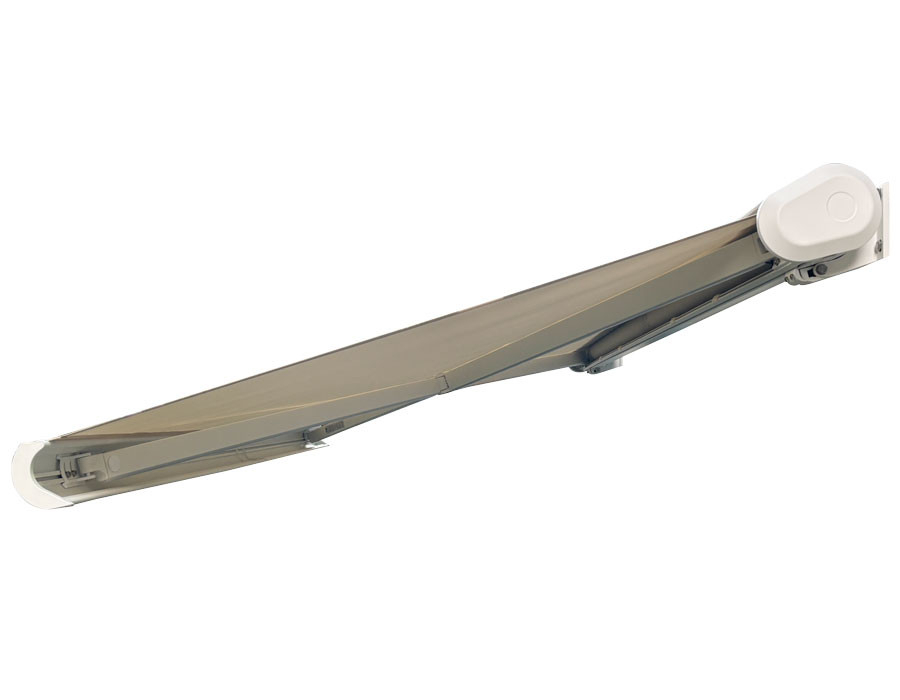 Markisen er en semikassette-model med indbygget motor og fjernbetjening, så du styrer den let uden besvær. Den robuste opbygning i aluminium med stål torsionsstang giver god stabilitet, og semikassetten hjælper med at beskytte dugen, når den er rullet ind.