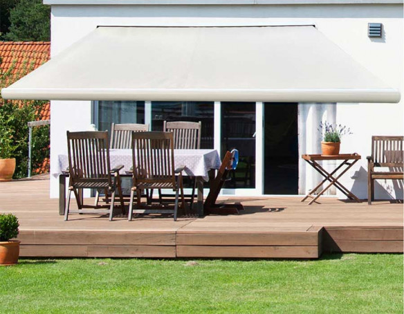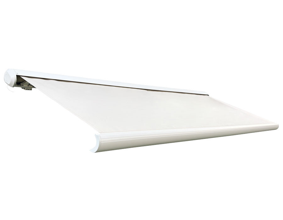Når markisen rulles ind lukker fuldkassetten helt omkring dugen og beskytter den effektivt. Den stærke opbygning med stålroller og robuste beslag giver en stabil løsning til...