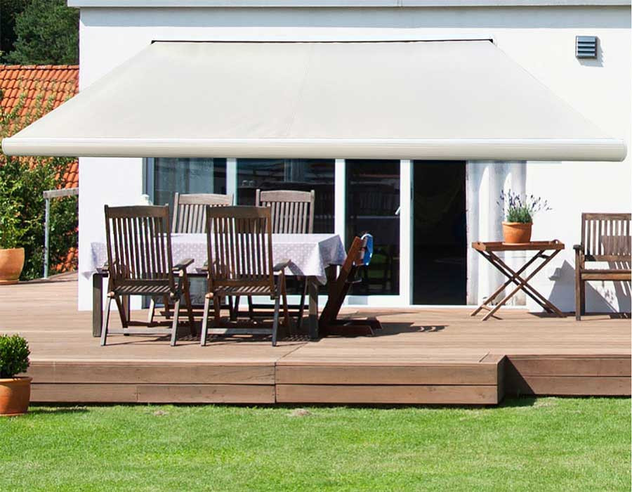 Når markisen rulles ind, beskytter fuldkassetten dugen mod vejr og snavs, mens stålroller og kraftige beslag sikrer en stabil og holdbar løsning til...