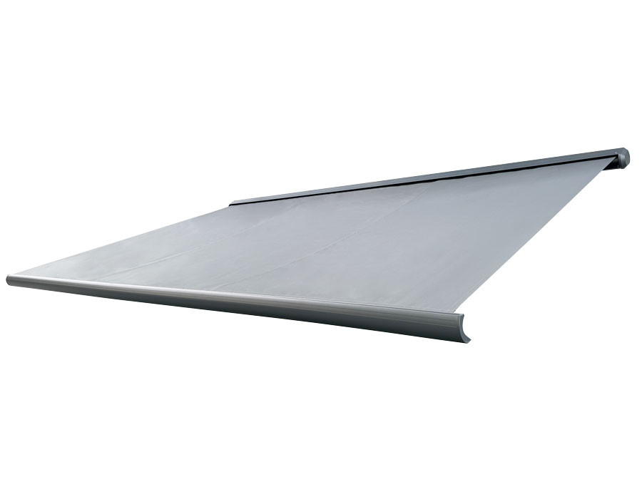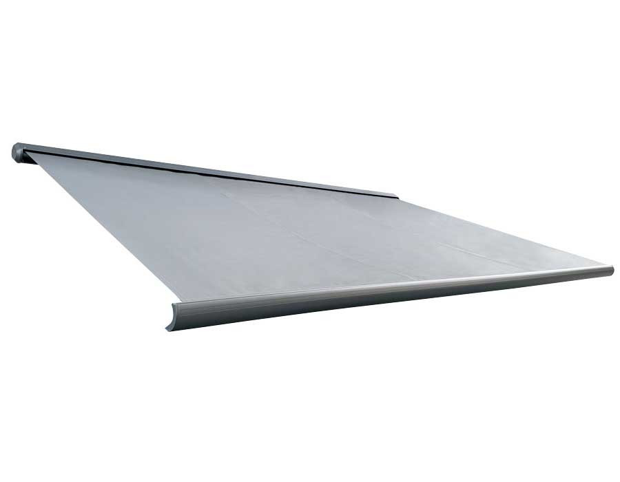 Den matte, hvide kassette giver et rent og moderne udtryk, og semikassetten beskytter dugen, når markisen er lukket. Konstruktionen er udført i aluminium med stål torsionsstang for stabilitet. Der medfølger loftbeslag...