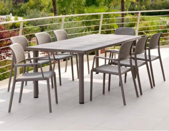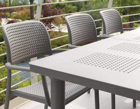 Dette havemøbelsæt fra Nardi består af Libeccio udtræksbord og Bora stabelstole i antracit – et stilrent, mørkt look til terrasse og have. Stolene kan kombineres med Nardis hynder der øger komfort og tilføjer personlighed til sættet.