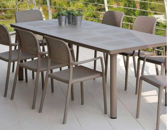 Dette Libeccio havebord fra Nardi er udført i farven latte, som giver et lyst og varmt udtryk, der passer smukt ind i rolige uderum.