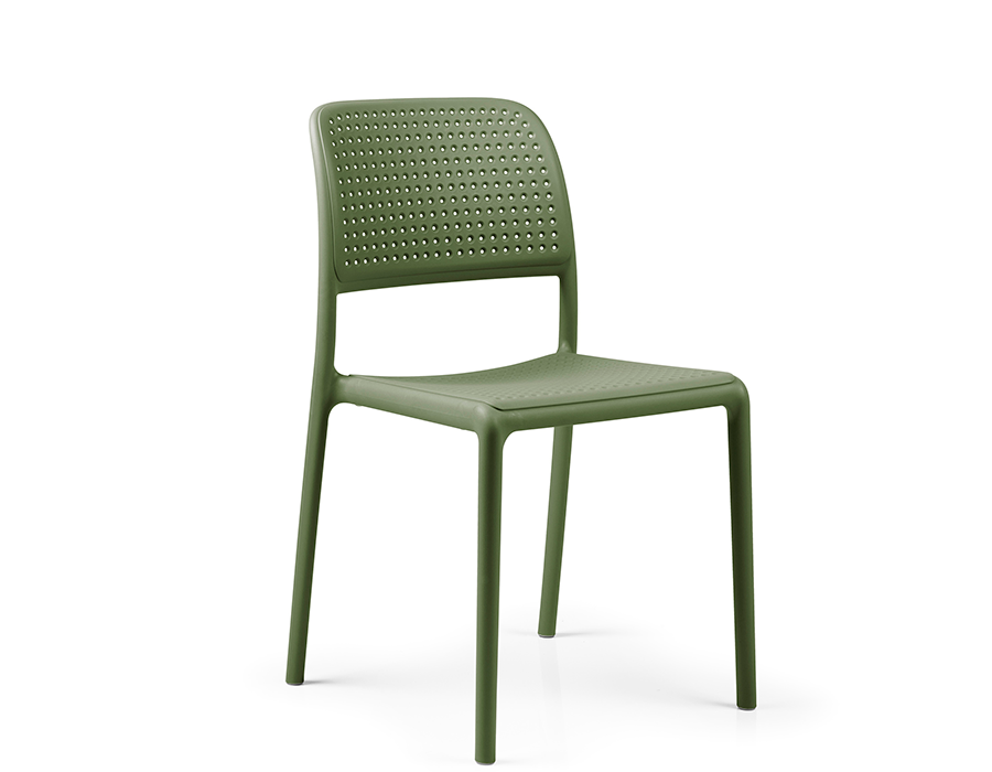 Bora Bistrot stol i den flotte grønne farve: "Agave" fra Nardi er fremstillet i glasfiberforstærket resin af høj kvalitet, behandlet med UV-beskyttelse for ekstra farve- og formstabilitet.