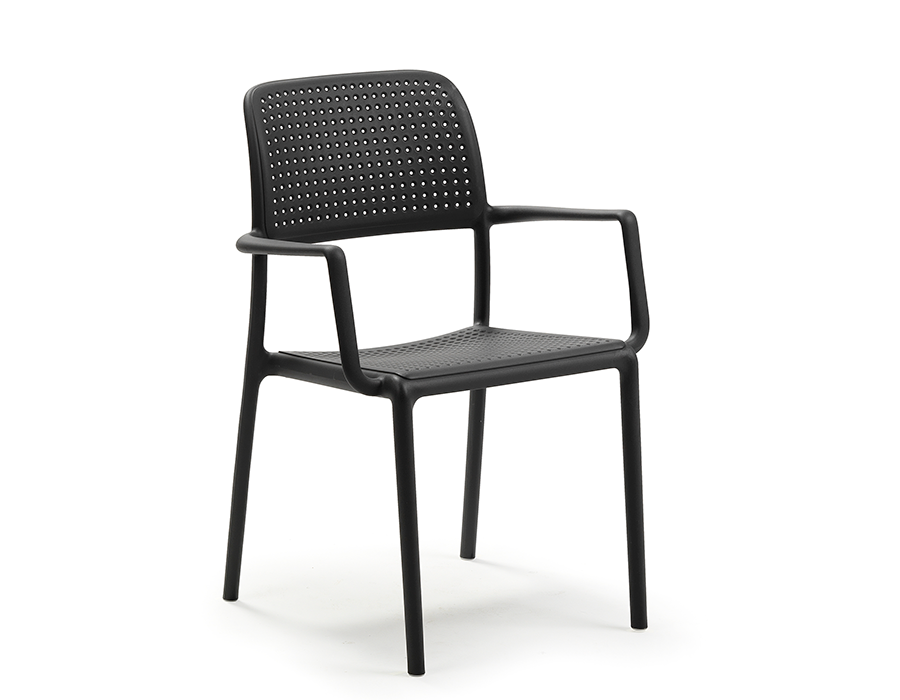 Bora Stabelstol fra Nardi i Antracit er produceret i holdbart, glasfiberforstærket resin med UV-beskyttelse.