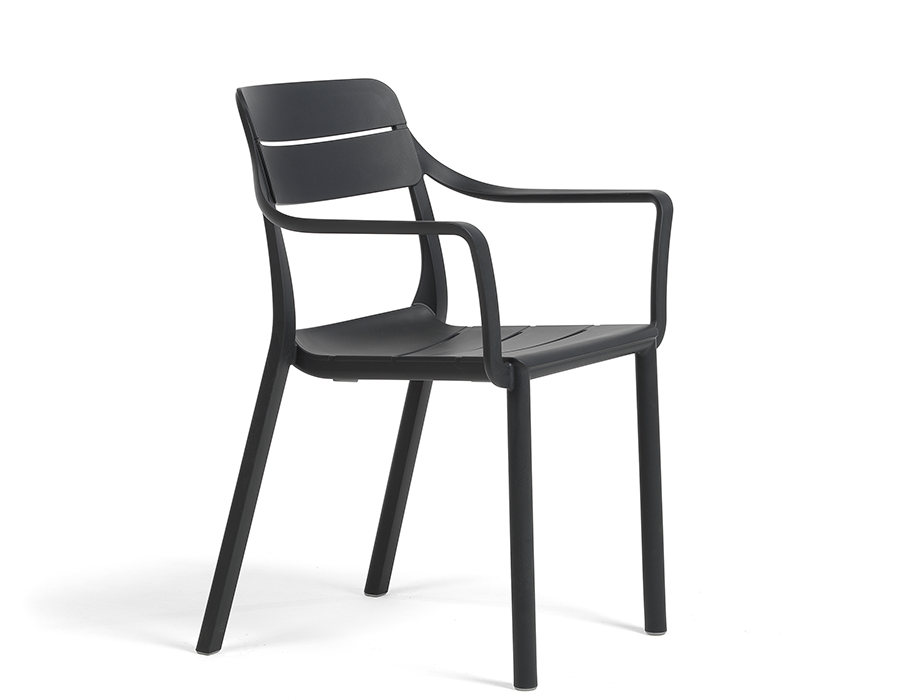 Nardi Tiberina stabelstol i antracit har et elegant, tidløst design med bløde, runde former og er ideel til udendørs brug på altan, terrasse, i haven eller som caféstol.