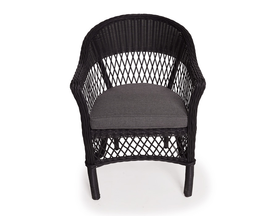 Elegant stabelstol i flot lysegrå polyrattan flet.