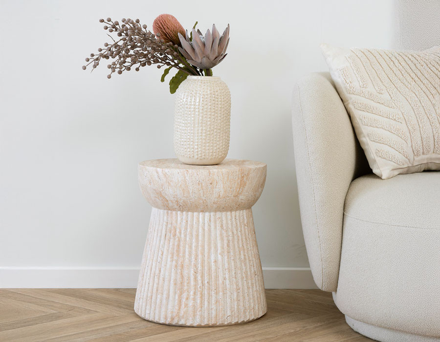 Bolette Sidebord m/riller - Ø37 x 43 cm - Natur
