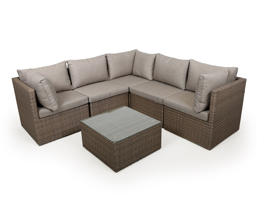 Modulerne er udstyret med justerbare plastikfødder for optimal stabilitet samt plastikforbindere der holder modulerne sikkert sammen. De medfølgende vandafvisende hynder har en TPU-belægning, der beskytter mod fugt....