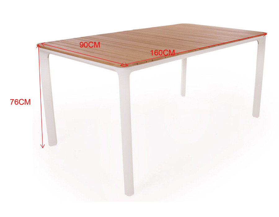 Elegant havebord med stel i hvidmalet aluminium. Bordpladen er fremstillet i superflot kerneteak.