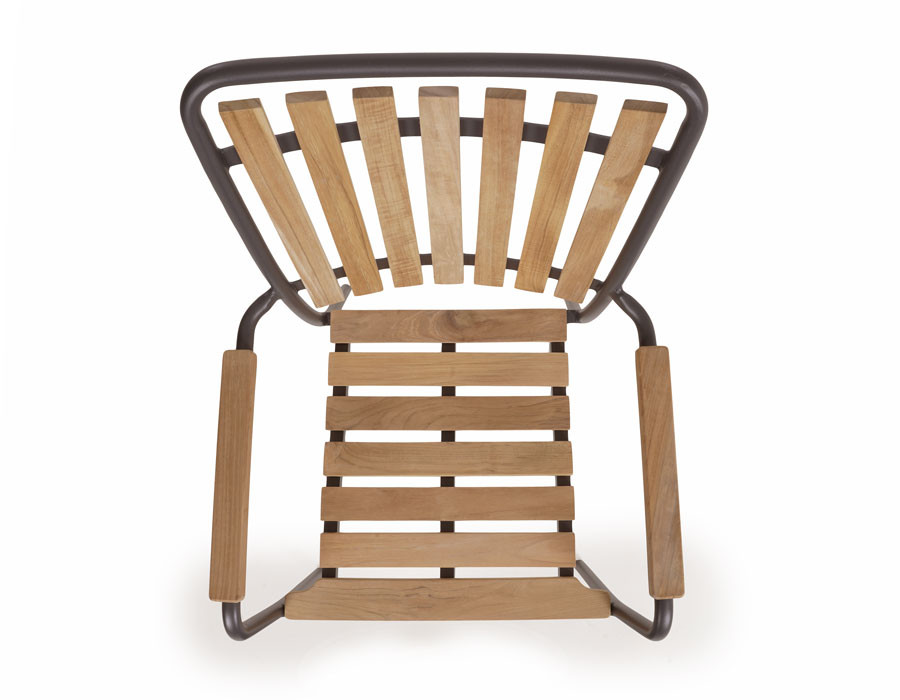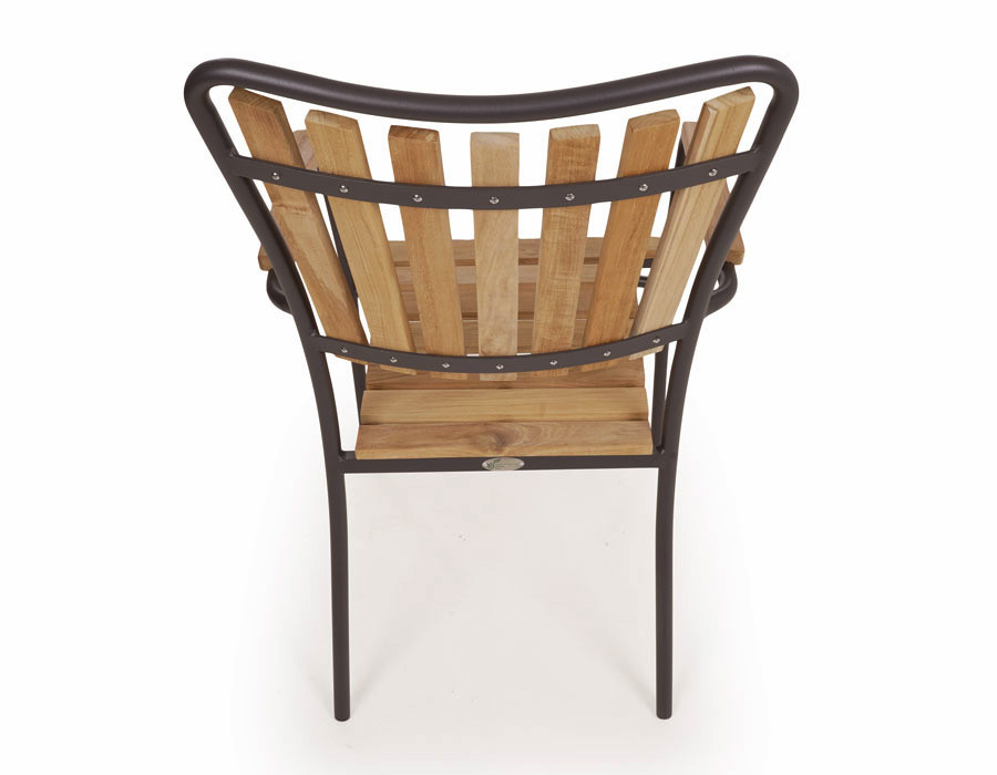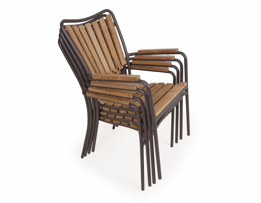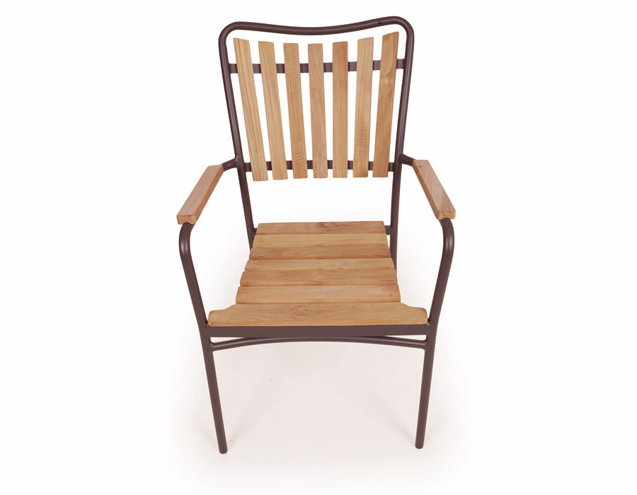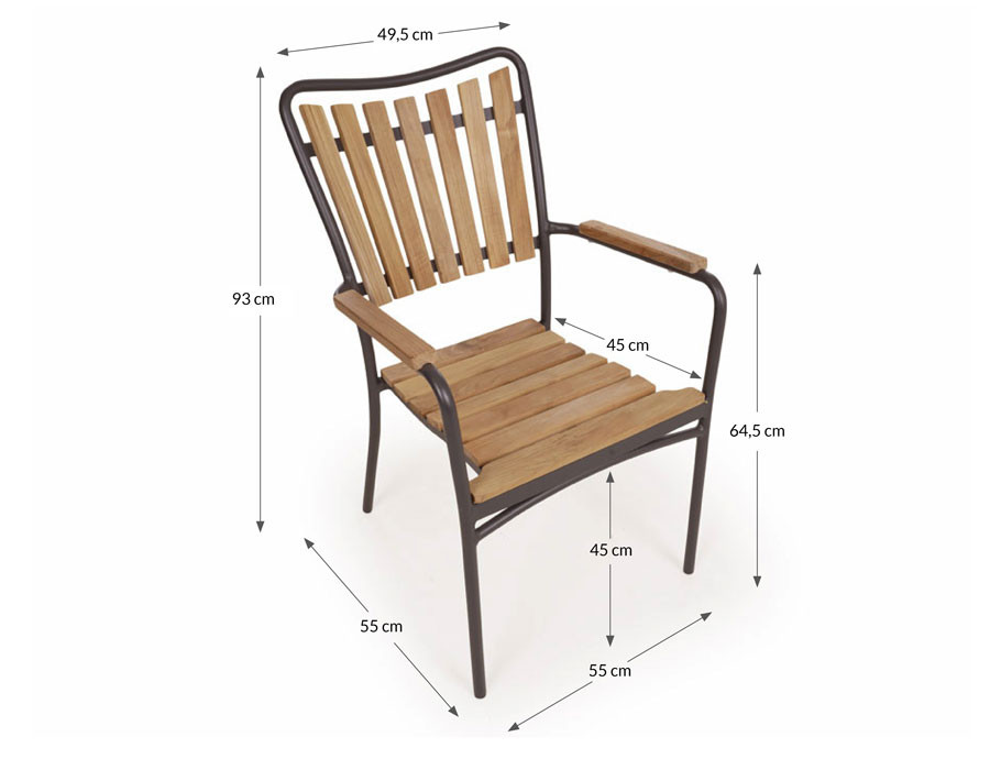 Denne stol har et elegant stel i pulverlakeret grå aluminium og er designet med et ergonomisk sæde og ryg i certificeret kvalitets teaktræ.