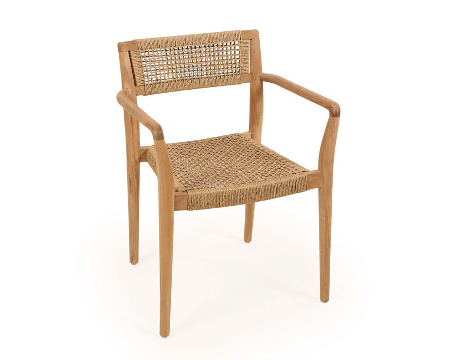 Fremstillet i lækker kerneteak. Stolen har et flot håndflettet sæde og ryg i polyrattan der er UV-bestandigt, nemt at rengøre, miljøvenligt og 100% genanvendeligt.
