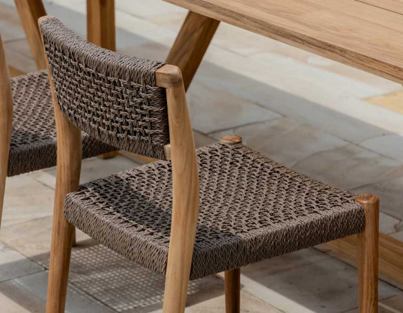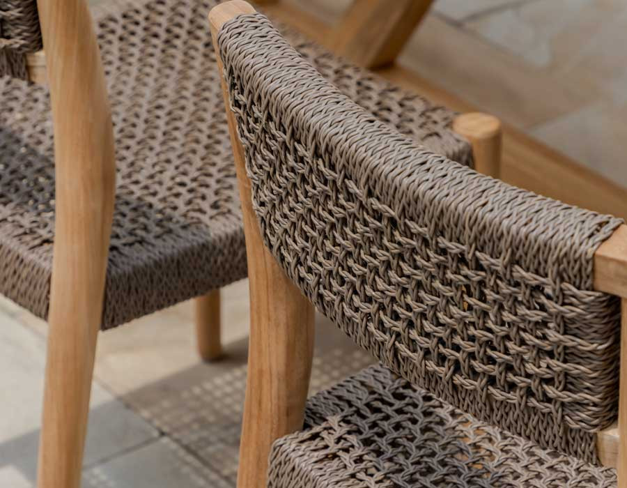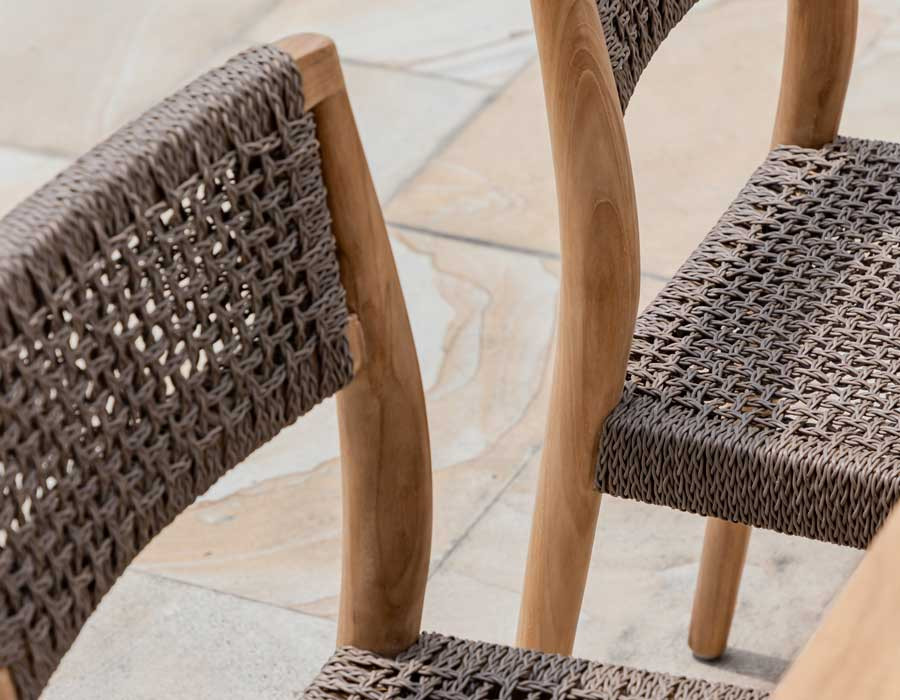 Stolene er fremstillet i kerneteak og har håndflettede sæder i UV-bestandigt polyrattan. De er nemme at holde rene, holder sig flotte sæson efter sæson og giver en behagelig siddeoplevelse, der inviterer til lange, hyggelige aftener. Det klassiske design fungerer desuden lige så godt indendørs, hvis du ønsker samme stil ved spisebordet året rundt.