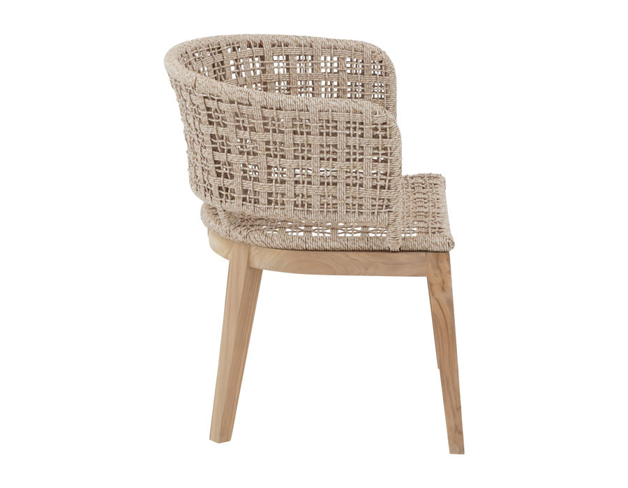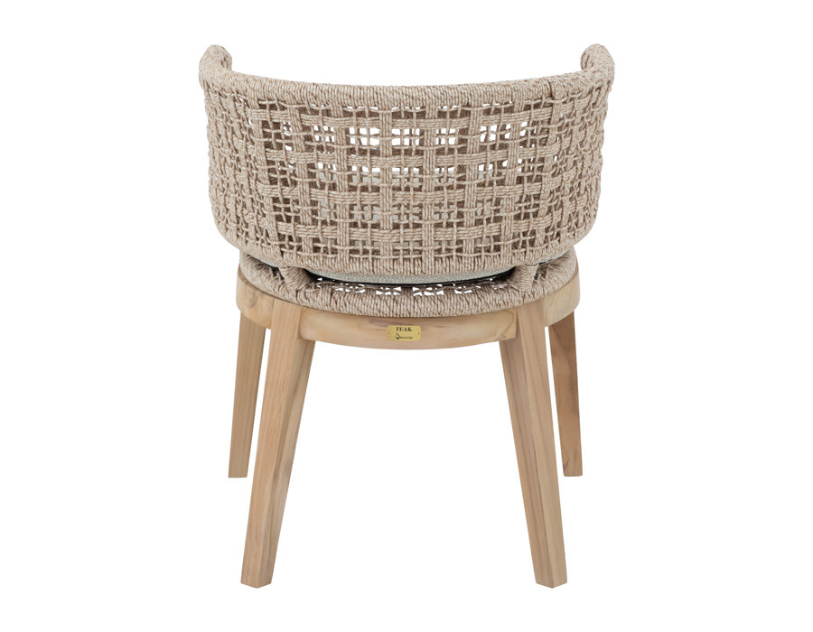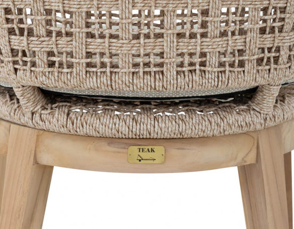Rima havestolen kombinerer varme naturmaterialer med et let og elegant udtryk. Det solide stel i certificeret kerneteak giver stolen en stabil base og fremhæver træets smukke, naturlige farvespil.
