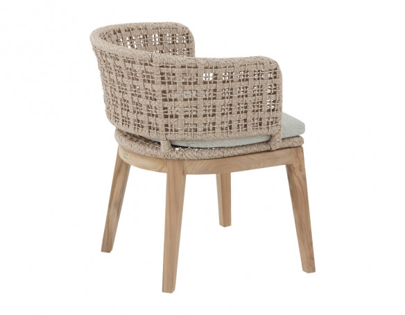 Ryglæn og sider er udført i flettet polyrattan, som tilfører et moderne, luftigt look og samtidig giver behagelig støtte, når du sidder ved bordet. De bløde,...