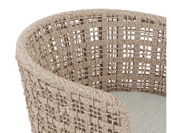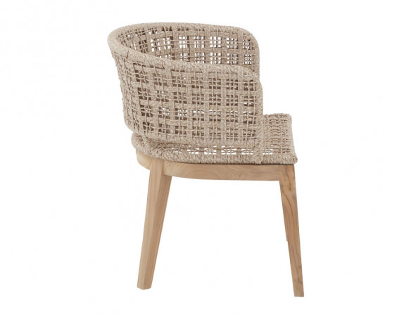 Ryglæn og sider er udført i flettet polyrattan, som tilfører et moderne, luftigt look og samtidig giver behagelig støtte, når du sidder ved bordet. De bløde,...