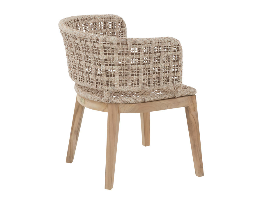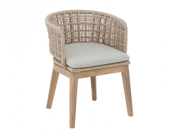 Rima havestolen kombinerer varme naturmaterialer med et let og elegant udtryk. Det solide stel i certificeret kerneteak giver stolen en stabil base og fremhæver træets smukke, naturlige farvespil.