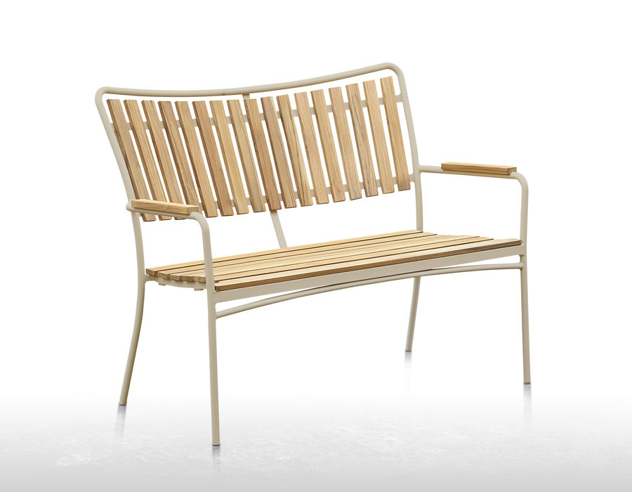 Gør terrassen ekstra indbydende med DaneLine Eva bænken, der skaber en hyggelig siddeplads med et let og moderne udtryk. Stellet er udført i pulverlakeret aluminium i en blød lattefarve, mens sæde og ryglæn er lavet i certificeret kvalitetsteak, som tilfører varme og et naturligt spil i overfladen.