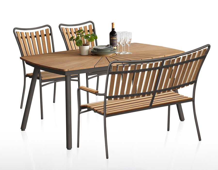 DaneLine Eva Teak Havemøbelsæt - 102x219 cm - Grå