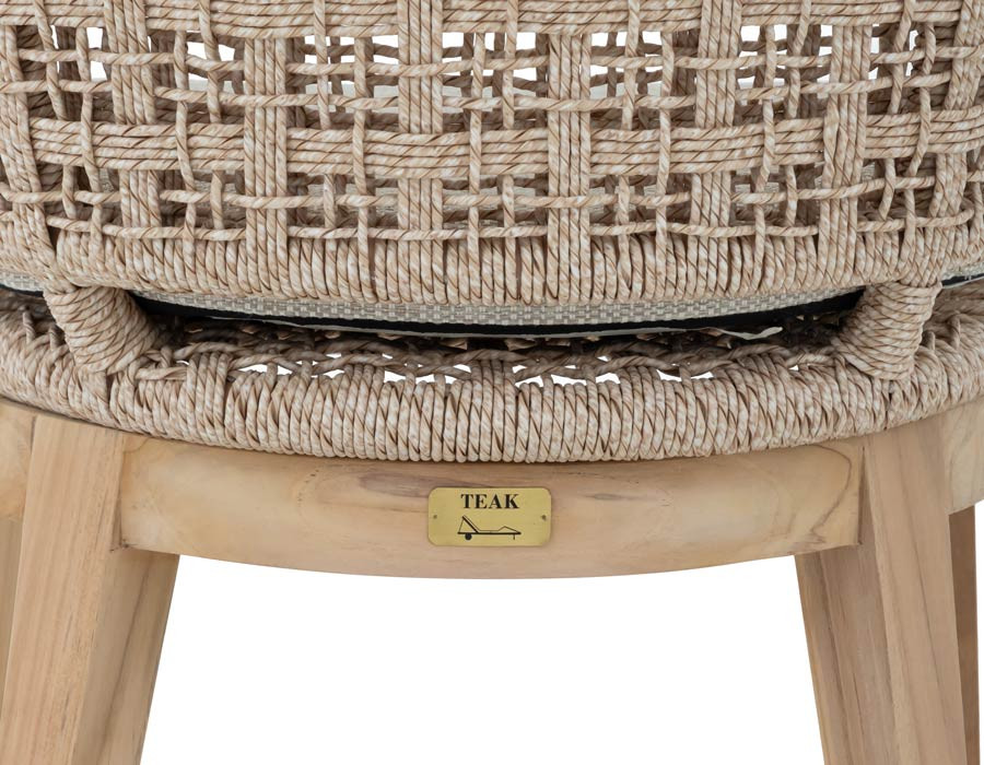 Rima havestolen kombinerer varme naturmaterialer med et let og elegant udtryk. Det solide stel i certificeret kerneteak giver stolen en stabil base og fremhæver træets smukke, naturlige farvespil.