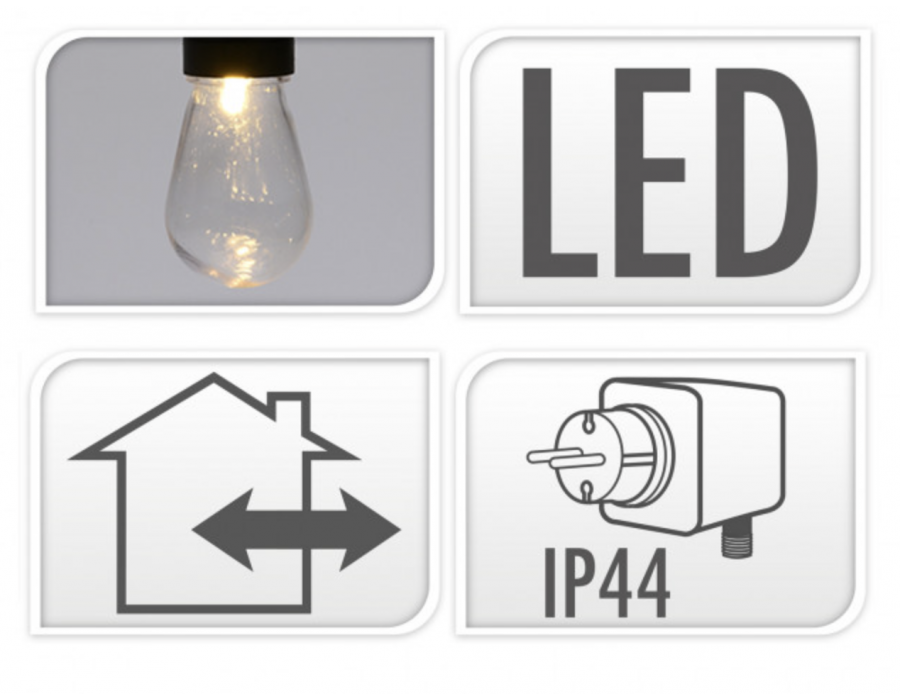 Lyskæde med 20 LED-pærer. Perfekt til at skabe hyggelig stemning på terrassen, altanen eller i stuen.