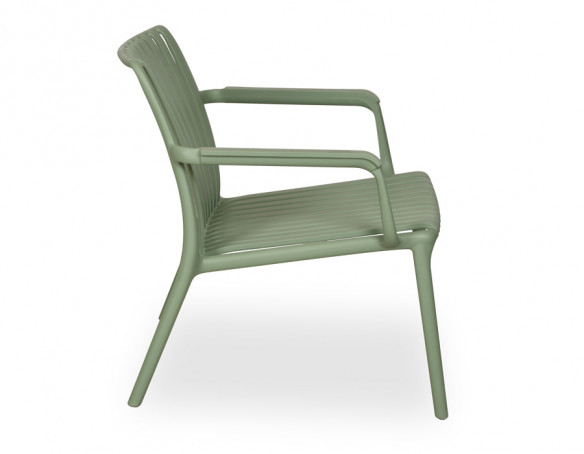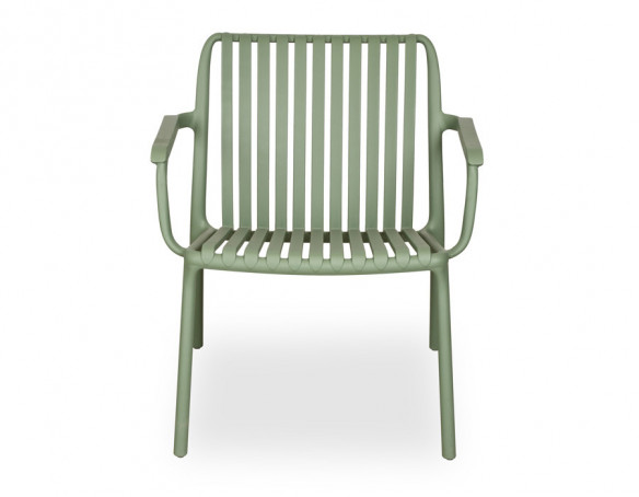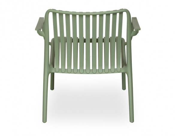 Skab et lyst og roligt loungehjørne med Sonja loungesæt med 2 loungestole og et matchende rundt sidebord i grøn. De elegante lameller i sæde og ryg giver et let, moderne udtryk – og en behagelig siddekomfort, hvor stolen følger kroppen.