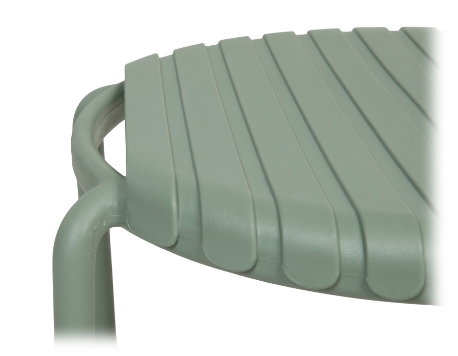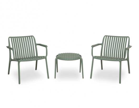 Sættet er fremstillet i slidstærk polypropylen (PP) med anti-UV, så det passer perfekt til udendørslivet og holder farven flot sæson efter sæson. Og når du vil rydde lidt op, kan loungestolene stables for nem opbevaring.