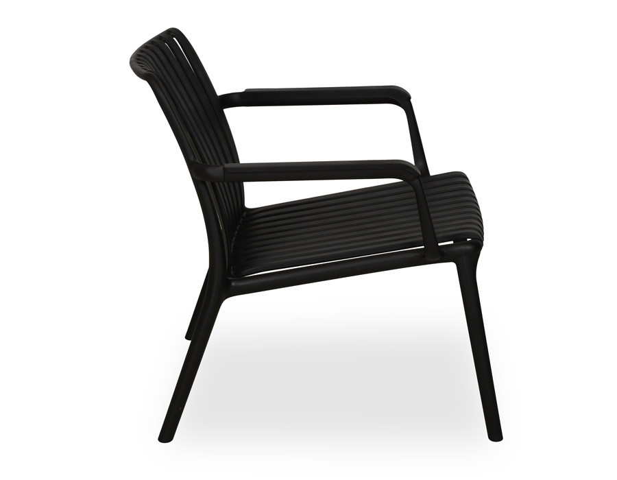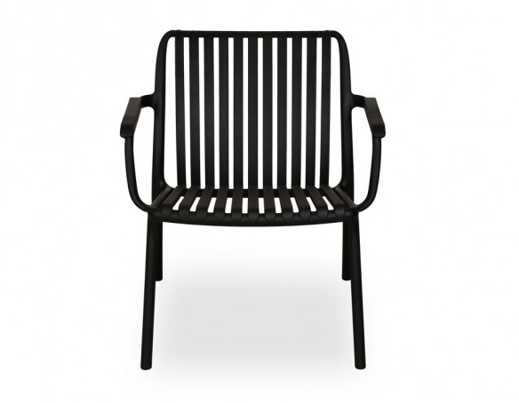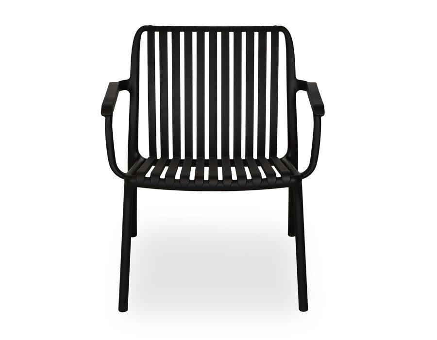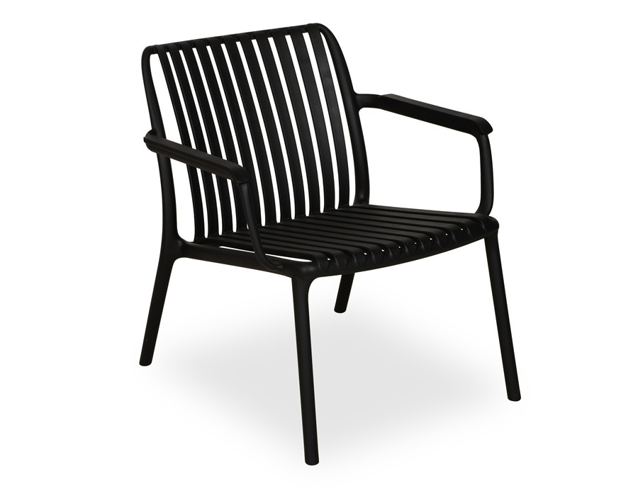 Skab en afslappet loungestemning på terrassen, altanen eller i haven med denne stilrene sorte loungestol i PP-plast. De elegante lameller i sæde og ryg giver et let, moderne udtryk, samtidig med at de former sig behageligt efter kroppen, så du kan sidde godt i timevis.