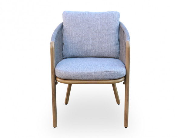 Stellet er fremstillet i aluminium med flot trælook, så du får fornemmelsen af træ – men med en mere vejrbestandig og vedligeholdelsesvenlig løsning. Det flettede reb langs sider og ryg giver stolen et luftigt, afslappet design og...