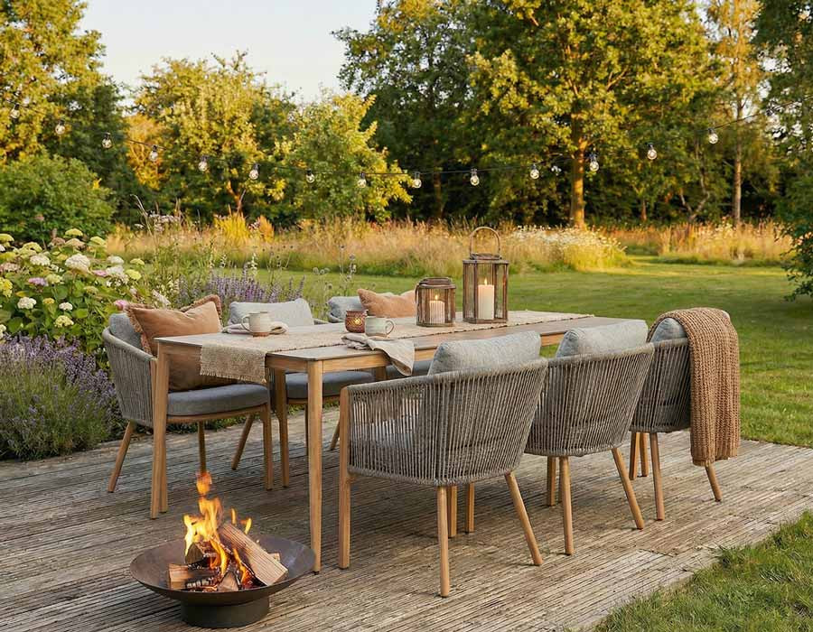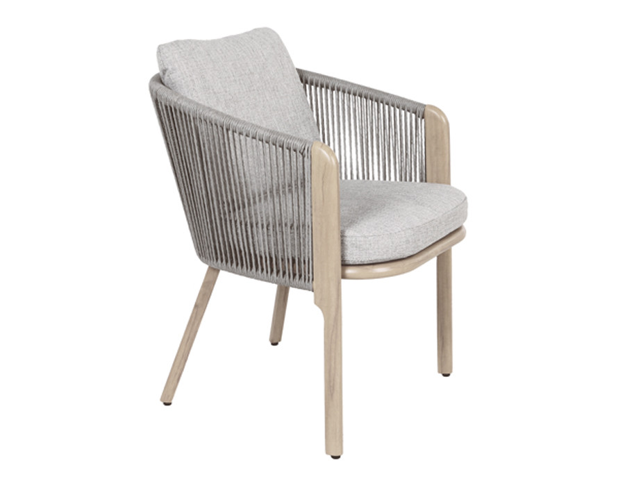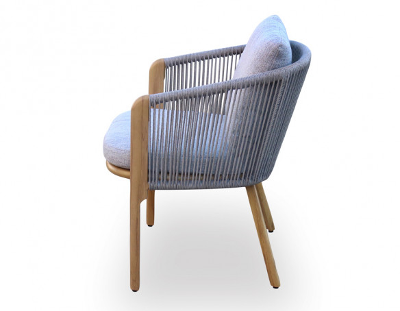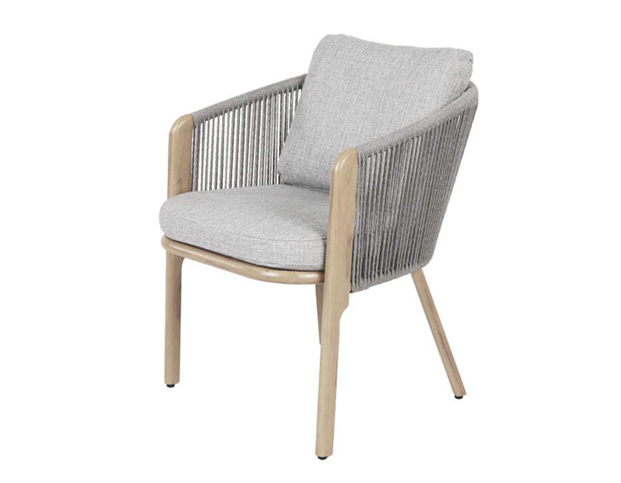 Giv terrassen et let og eksklusivt udtryk med denne elegante havestol, hvor moderne materialer møder et varmt, naturligt look.