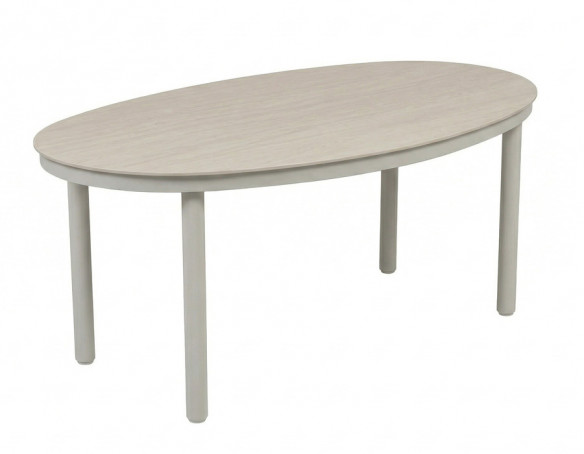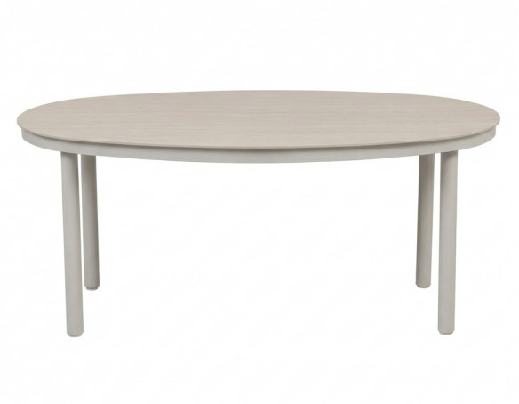 Dette elegante havebord har en bordplade i sintret sten, som giver en eksklusiv, stenlignende overflade og en robust løsning til udelivet. Den ovale form skaber et blødt og indbydende udtryk og giver god plads omkring bordet – perfekt til både hverdagsmåltider og gæster på terrassen.