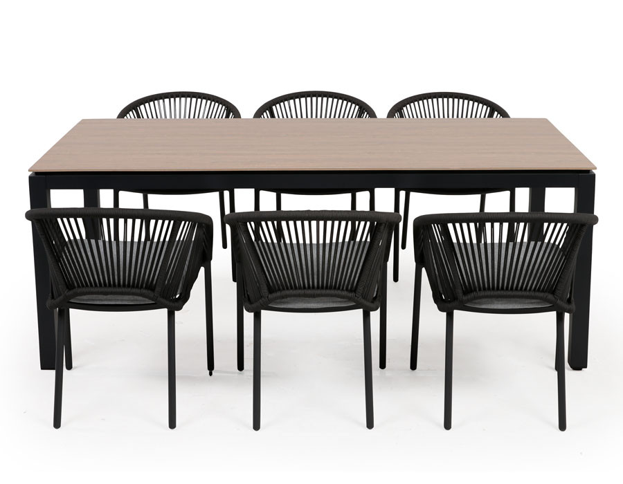 Selma bordet i antracitgrå er en robust og stilren løsning til udelivet, skabt til at klare det skiftende danske vejr. Stellet i pulverlakeret aluminium giver et let, men solidt fundament, og bordpladen i sintreret sten sikrer en stærk overflade, der kan holde til daglig brug udendørs.