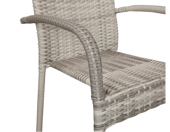 Geneve-stolene har et solidt stålstel og 2-line grå polyrattan-flet, der tåler udelivet og holder sig pænt sæson efter sæson. De kan stables, når de ikke er i brug, og er 100% vedligeholdelsesfri.