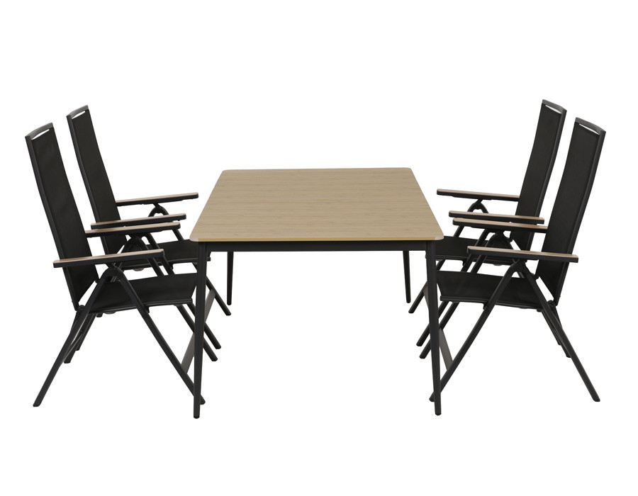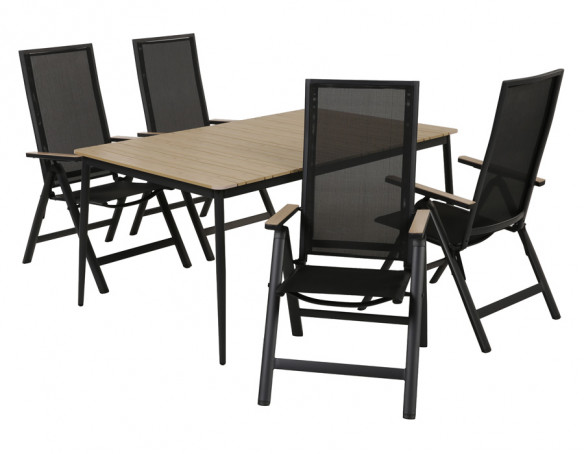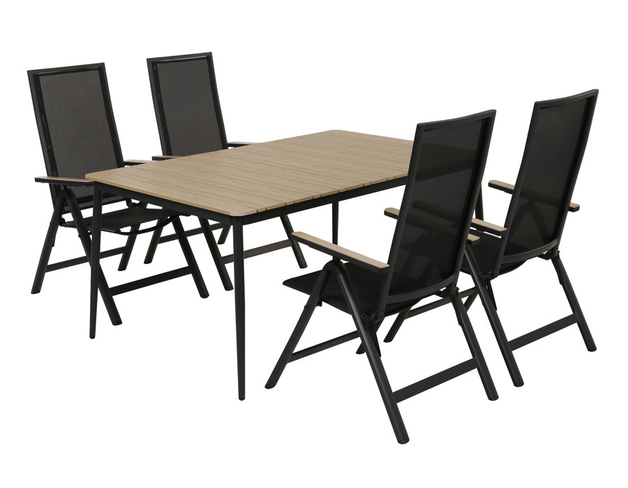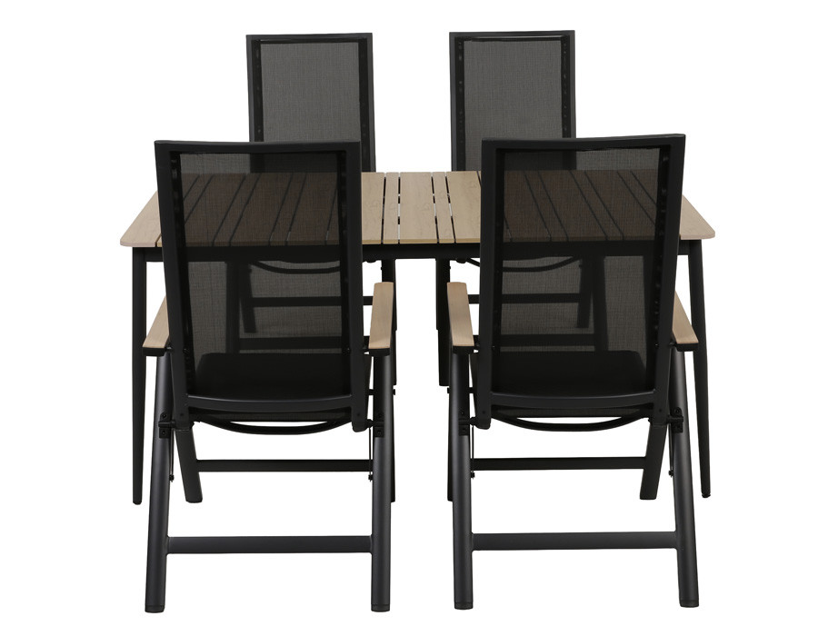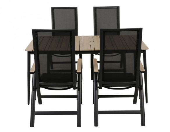 Dette havesæt består af Malmø havebordet og 4 Malmø positionsstole, som tilsammen skaber en stilren og fleksibel spiseplads til terrassen eller altanen. Bordet har et solidt aluminiumsstel med mørkegrå pulverlakering og en bordplade i nonwood/polywood i naturlig træfarve, som giver et varmt udtryk og kræver minimal vedligeholdelse. Med en længde på 160 cm...